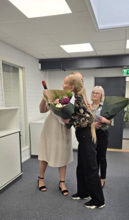 Muistimme ja kiitimme juhlassamme kolmea työntekijäämme erilaisista ansioista. Palkka-asiantuntijamme Hanna Uutelalla tuli 10 vuotta täyteen Accotileillä, taloushallinnon asiantuntijamme Saara Saloranta sai Pro Taloushallinto Hopea -ansiomerkin ja kirjanpitopäällikkö Päivi Tähtinen sai Pro Taloushallinto Kulta -ansiomerkin.